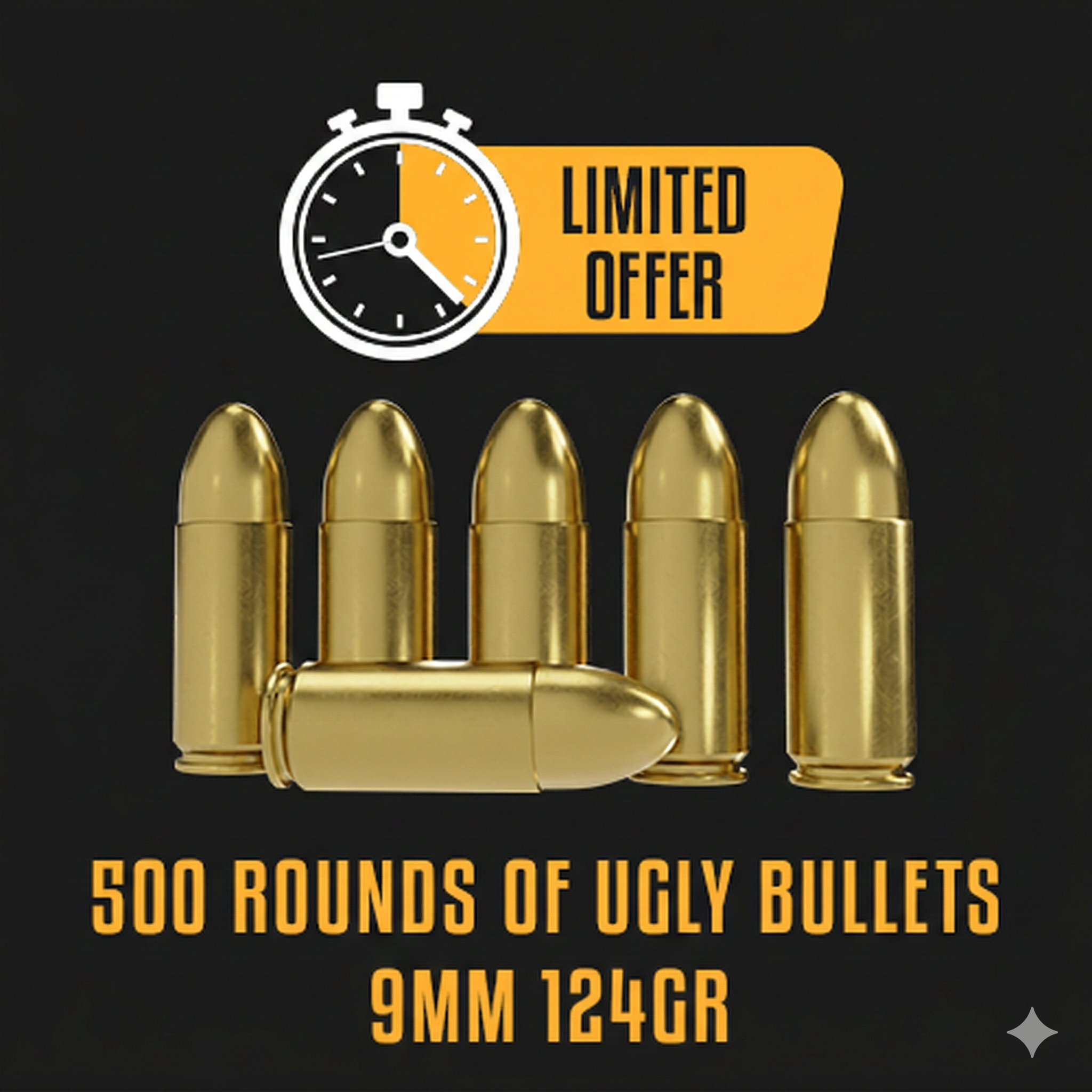 500 Rounds of 9mm 124gr: new, not reloaded. not match grade, they just go bang.Discounted price.STACCATO SECONDS